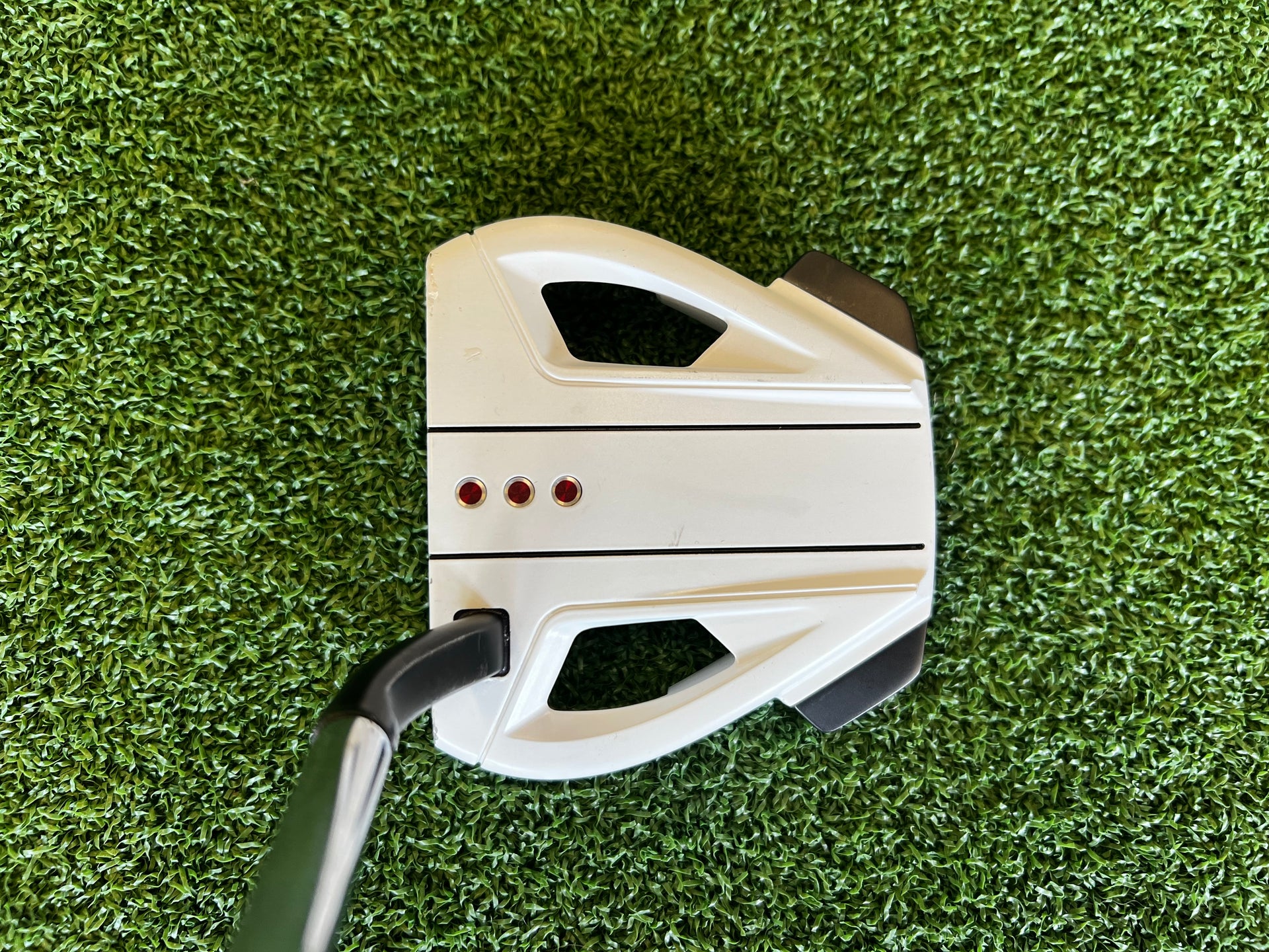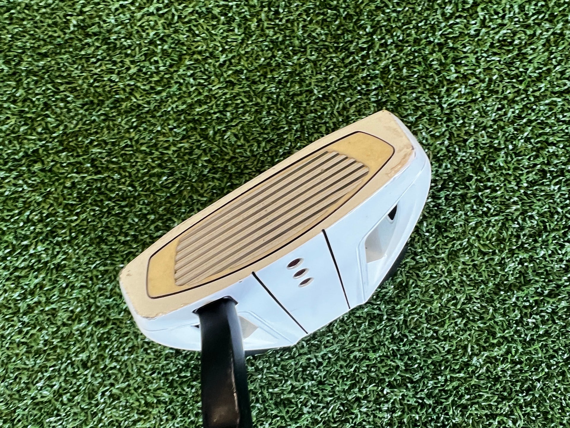 The Spider EX putter combines the innovative Fluted Feel™ shaft with the new Pure Roll² insert and True Path™ alignment for enhanced confidence on the greens. True Path Alignment features a reflective white color that aids aim, making the stroke and ball path more visible. With two rails and three dots, it frames the ball for a consistent address position. The Fluted Feel™ shaft enhances touch while ensuring the stability and forgiveness that Spider putters are renowned for, resulting in a superior putting experience.