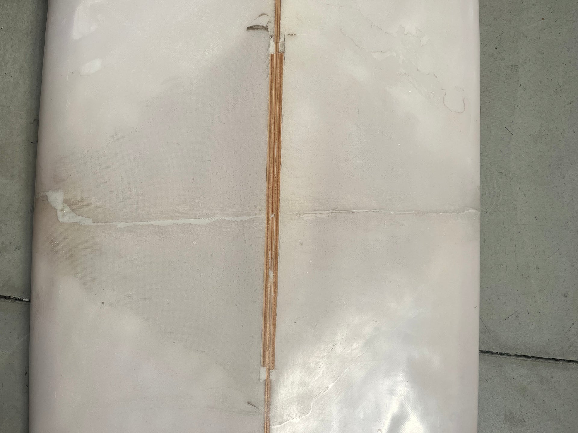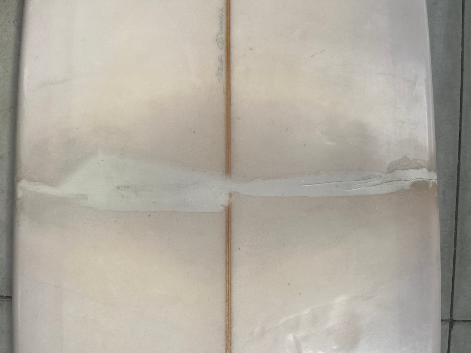*One unrepaired ding and one small crack in a pervious repair*